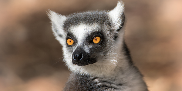 These picture-perfect primates are native to the forests of Madagascar. Ring-tailed lemurs are identifiable by their long, vivid black and white striped tail and golden eyes. They use their hands and feet to effortlessly move through the trees. Their tail is not prehensile, they use it for balance instead.