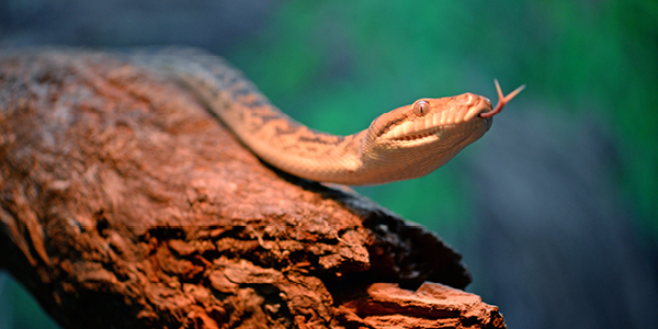 These impressive hunters are often spotted under the cover of darkness in search of their prey. Scrub pythons are non-venomous. They will use their large teeth to secure their prey, before wrapping their muscular body into coils, suffocating and consuming their prey whole! On the menu for these reptiles are rodents, fruit bats, possums, even animals as large as juvenile kangaroos. Crikey!