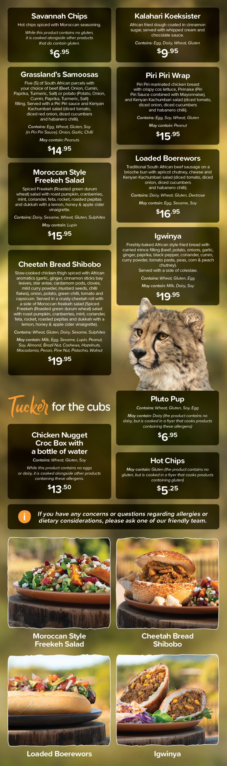 View our extensive menu with dietary information: